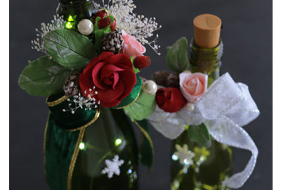 クリスマス1DAYレッスンでご制作いただく薔薇のワインボトルホルダーはこんな仕掛けがあるんです。キラキラとボトルの中に煌めく点灯がご覧いただけますでしょうか。Continue Reading